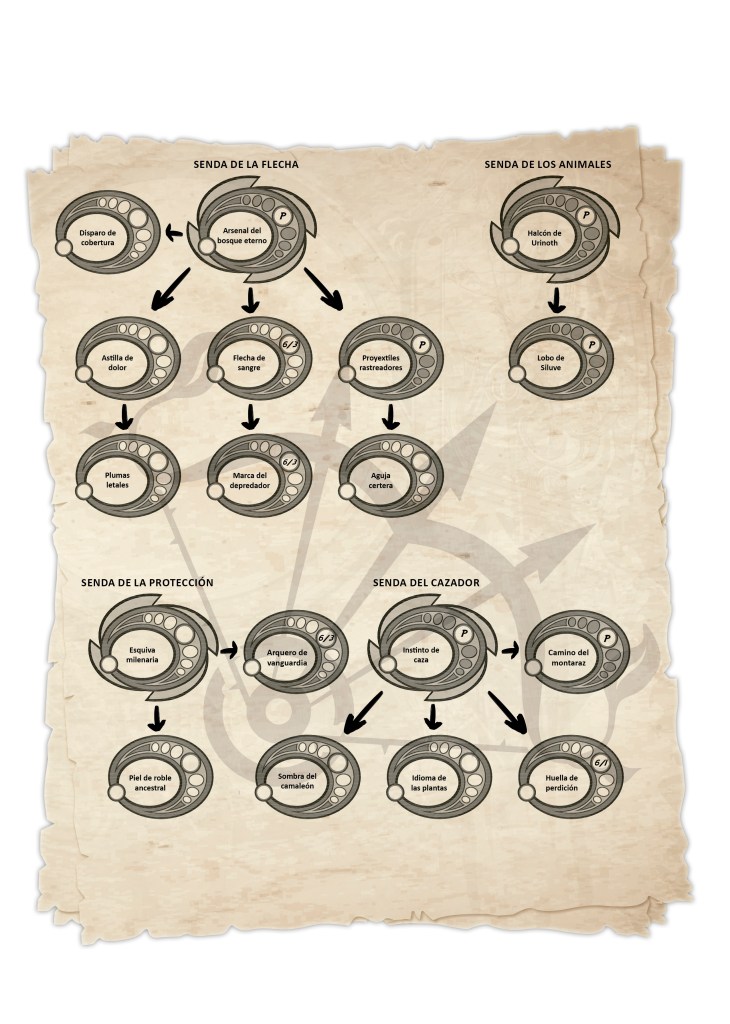 - Huella de la perdición: El personaje obtiene visión de una criatura rastreada y puede transportarse con sus aliados junto a ella.
