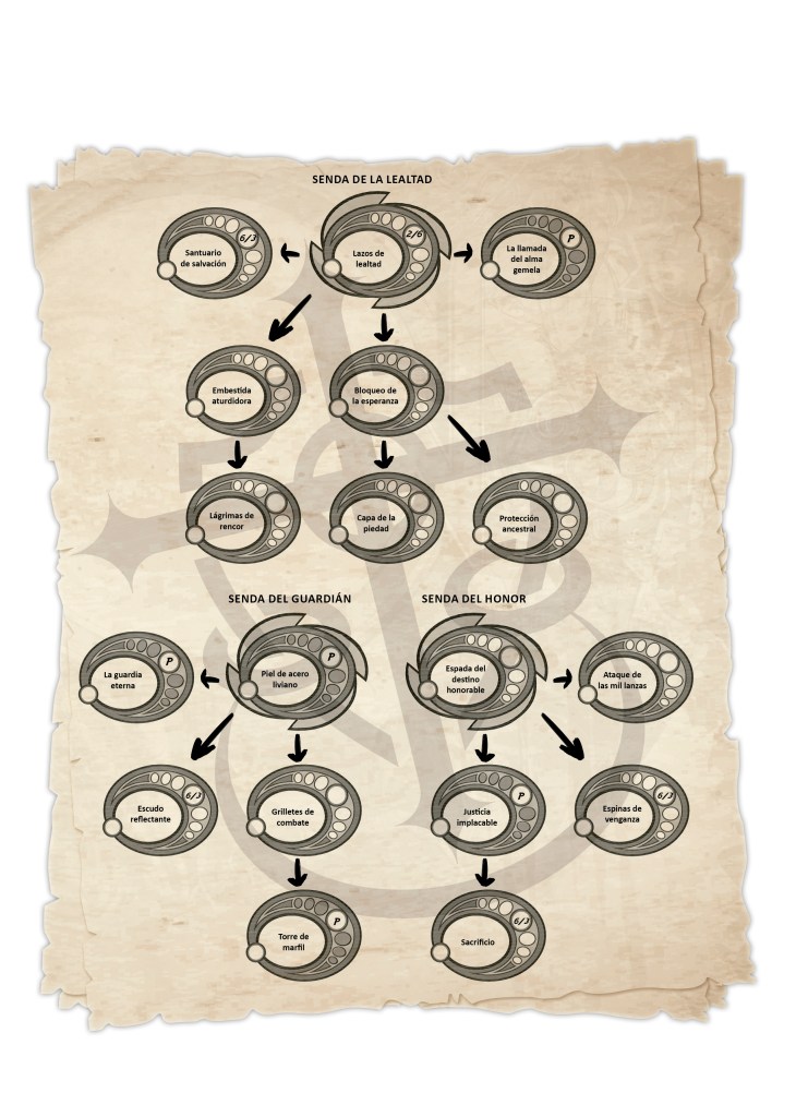 - Torre de marfil: Proporciona una segunda tirada de armadura cuando el personaje se encuentra herido de gravedad