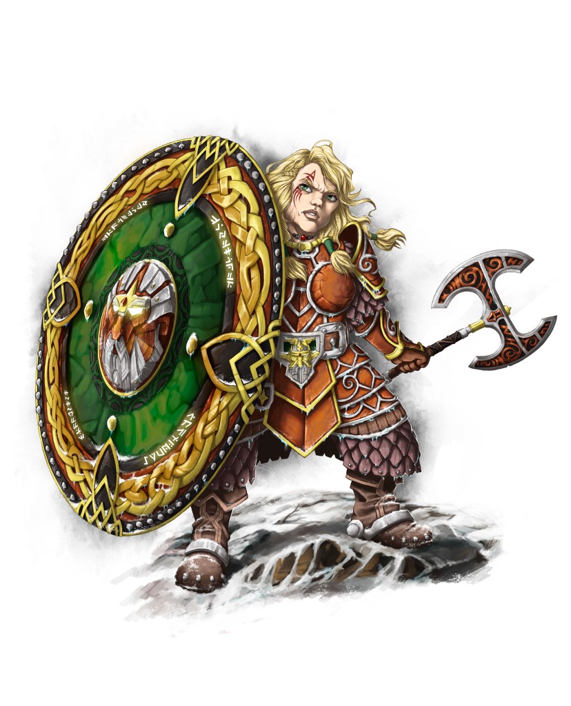 1 habilidad a elegir entre (“Arma a 2 manos”, “Arma y escudo” o “2 armas”), Pelea, Proyectiles, Resistencia planar, Fortaleza, Equitación, Gimnasia, Esprint, Intimidación, Presencia, Lingüística y Medicina.